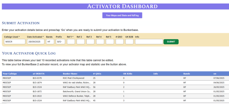The use of BunkerBase 2 is not mandatory. UKBOTA supporters are welcome to activate, hunt, and claim awards without using BunkerBase. However, those participating in UKBOTA are strongly encouraged to use BunkerBase 2 for the most informed and immersive experience!