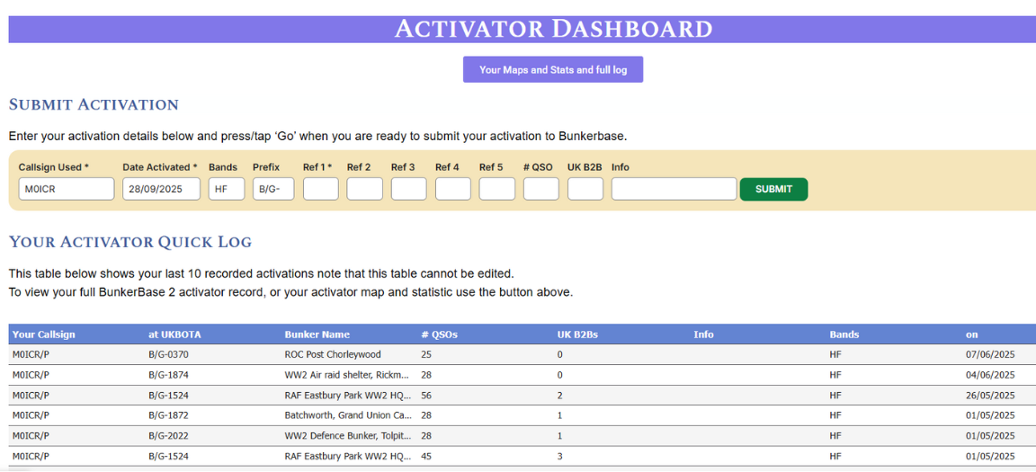 (2) All previous UK bunker activations recorded on BunkerBase,