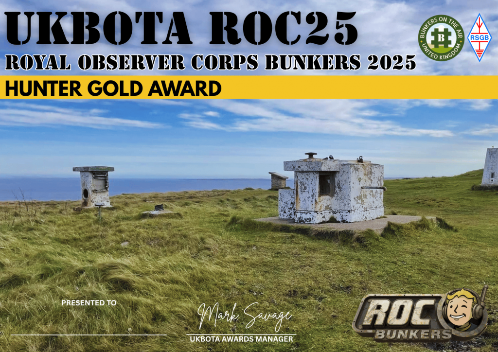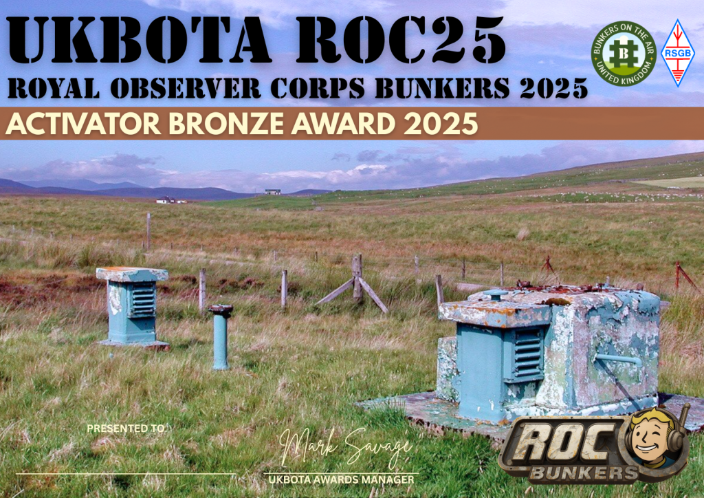 The next UKBOTA ‘special event’ is Royal Observer Corps Bunkers 2025 (ROC25). The event runs 1st-31st October 2025.