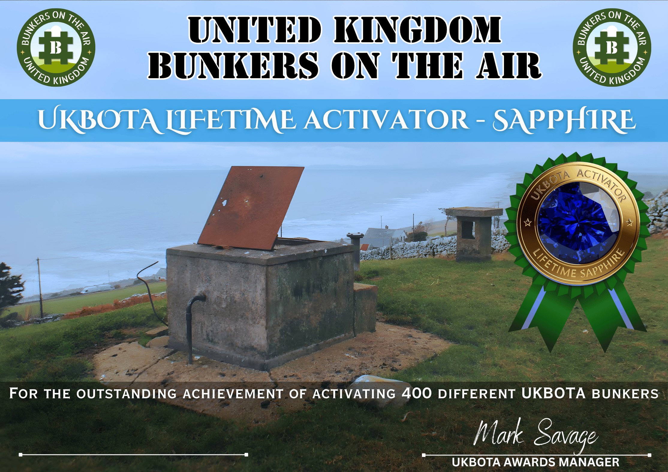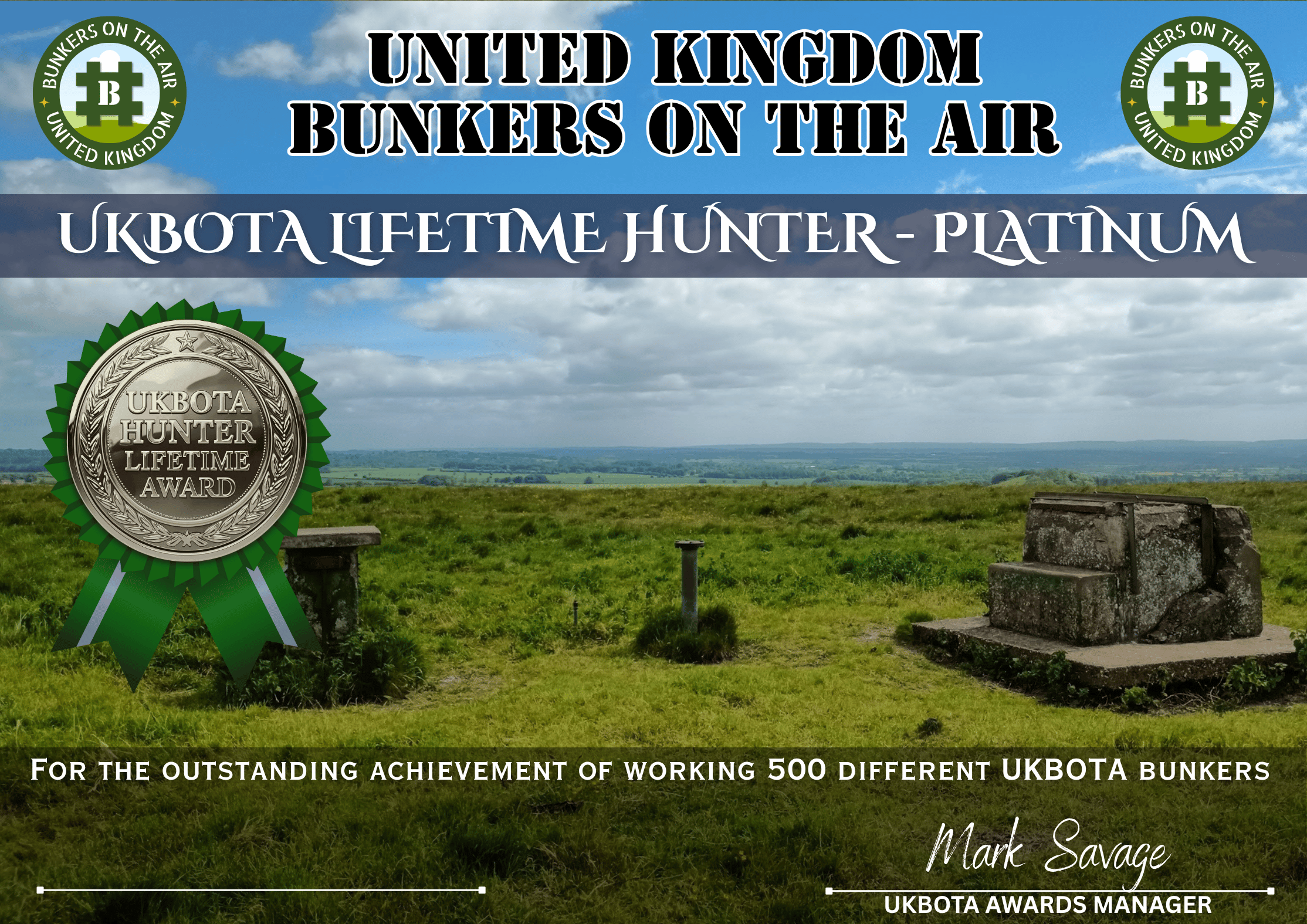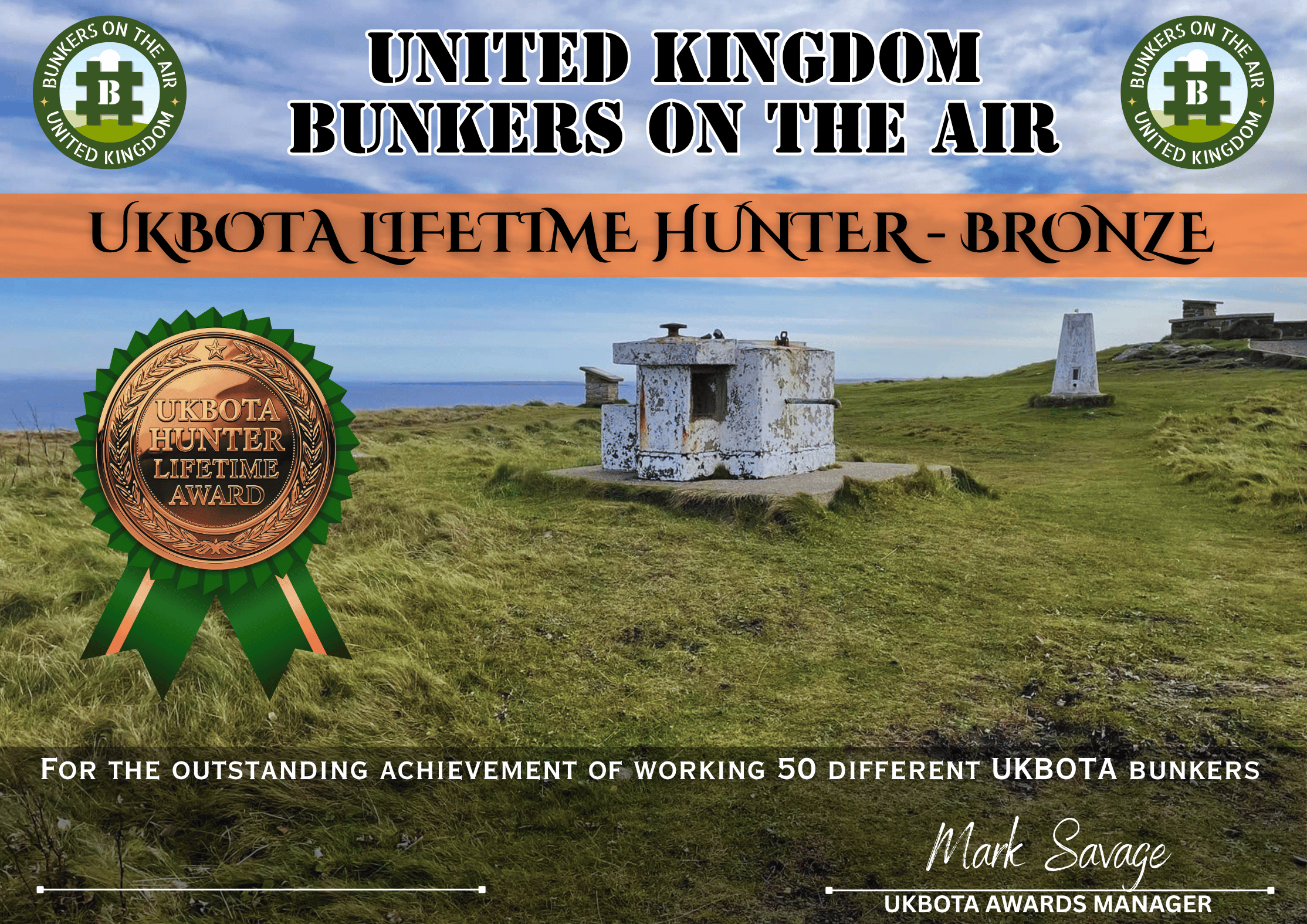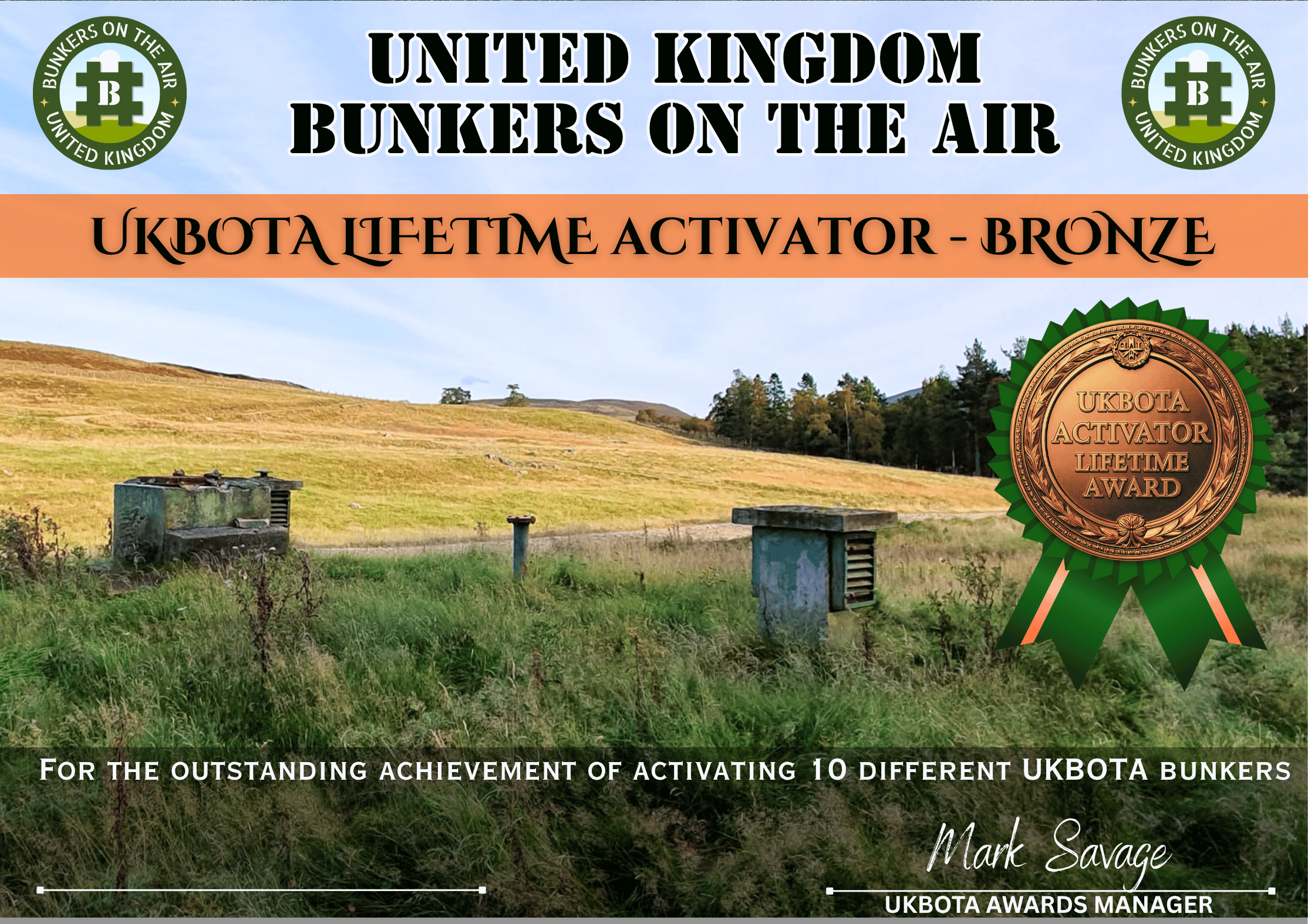 UKBOTA offer a wide range of awards and challenges to suit different interests and styles of operating. We do not suggest that beginners try to participate in all the awards from the outset! The awards shaded with a light green background are the suggested basic starting awards for newcomers. The Lifetime Reference Awards, Bunker to Bunker Awards and Annual Reference Awards can all be recorded and scores viewed on our BunkerBase portal.