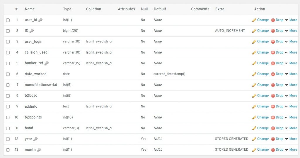 | user_id | ID | user_login | callsign_used | bunker_ref | date_worked | numofstationswrkd | b2bqso | addinfo | b2bpoints | band | year | month | bandtype | bandtype_str |